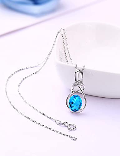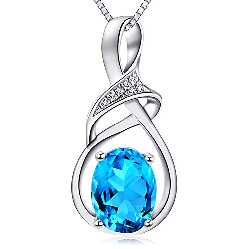 HXZZ Fine Jewelry Gifts for Women Natural Gemstone Swiss Blue Topaz Amethyst Citrine Sterling Silver Pendant Necklace