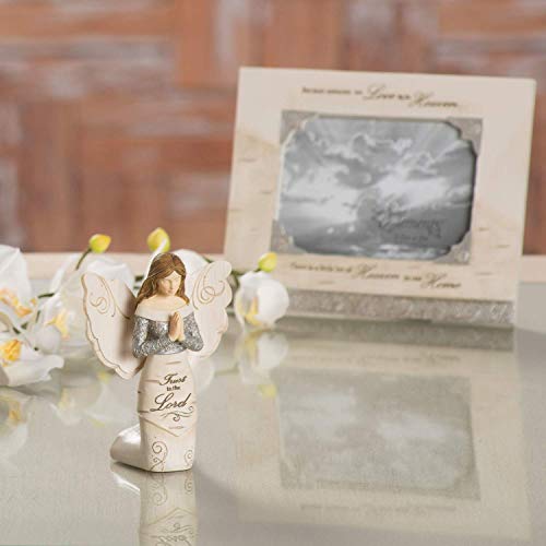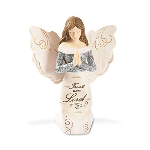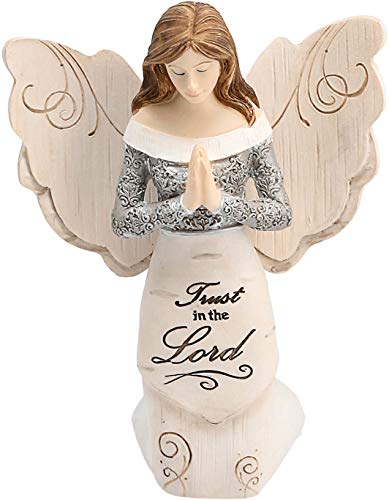 IN-HOUSE DESIGN: "Trust In The Lord" text is debossed and painted onto the front of the angel, alongside an intricate silver design.
